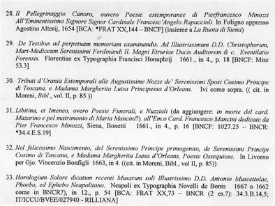 IL PREZIOSO ELENCO E' ANCORA DOVUTO ALLA CORTESIA DEL SIGNOR RENATO GIULIETTI RESPONSABILE DEL SETTORE CULTURA DEL COMUNE DI MONTE SAN SAVINO (PROVINCIA DI SIENA) CHE HA DOVEROSAMENTE USATO LE SIGLE DELLE BIBLIOTECHE IN CUI HA INDIVIDUATO LE OPERE DEL MINOZZI