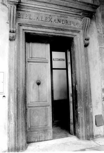 Nel clima di straordinario fermento culturale del XVII secolo Alessandro VII Chigi istituì a Roma una nuova biblioteca e la chiamò, non senza una punta di civetteria, Alessandrina. La personalità ricca e complessa del papa ne segnò l’avvio, determinandone indirizzi e fisionomia. Due furono gli obiettivi del suo fondatore. Uno fu quello di aprire a Roma una biblioteca universitaria , sull’esempio delle biblioteche che, a partire dal XVI secolo, si andarono diffondendo in Italia e in Europa. L'altro fu quello di istituire una biblioteca , che per prestigio e per ricchezza fosse seconda soltanto alla Vaticana e contribuisse a celebrare la grandezza di Roma, faro di cultura e di fede . Alessandro VII stabilì la sede dell’Alessandrina nel cuore della città e ne affidò la giurisdizione alla "Studium Urbis", fondato da Papa Bonifacio VIII con la bolla "In supremae praeminentia dignitatis". Si adoperò poi senza riserve alla raccolta di fondi librari con interventi di confisca a volte duri e spregiudicati, di certo però i più cospicui e significativi nella storia della Biblioteca. Inoltre, nel 1666, destinò all'Alessandrina un appannaggio costituito dai sopravanzi della somma stabilita per i salari dei lettori dello "Studium". Il patrimonio librario fu sin dall’inizio ricco ed articolato, sì da rappresentare compiutamente il rinnovato interesse delle indagini speculative condotte, sulla base del metodo galileiano, sia in campo umanistico, sia in campo scientifico. La Biblioteca occupò l’area compresa tra la strada dell’antica Dogana e la piazza di S. Eustachio, contigua al palazzo della "Sapienza" ed alla Chiesa di S. Ivo , opera "dell'architetto romano" Francesco Borromini. La costruzione fu terminata alla fine del 1660. I lavori per la sistemazione del salone , lungo 36 metri e largo 14, illuminato da 14 finestroni superiori e 2 inferiori, vennero iniziati nel 1661. Il progetto della scaffalatura fu assegnato ancora una volta al Borromini, che già venti anni prima aveva realizzato il salone della Biblioteca Vallicelliana. Il "Trionfo della Religione" , dipinto dal pittore Clemente Majoli nella zona centrale della volta, esaltava la rinascita della fede nello splendore del barocco romano. Sulla parete orientale corta trovarono posto un busto in marmo bianco raffigurante Alessandro VII ed una iscrizione di elogio del papa. Più tardi due grandi mappamondi, opera del monaco Amanzio Moroncelli, completarono l’arredamento dell’ambiente. Nella bolla del 21 aprile 1667, con singolare coincidenza con il Natale di Roma, fu promulgato l’ordinamento della Biblioteca. L'Alessandrina era retta dal Collegio degli Avvocati Concistoriali e aveva una propria dotazione annua tratta dalle pigioni delle case e delle botteghe della Sapienza ; il Collegio nominava il bibliotecario e due custodi scelti fra i religiosi con obbligo di alloggio nell’edificio ; il furto dei libri a stampa o manoscritti era punito con la scomunica "latae sententiae" Il 6 novembre 1670 una Notificazione a stampa annunciava l’apertura dell’Alessandrina "a pubblico uso e comodità". La Biblioteca possedeva già 35.000 volumi circa ed era dotata di un catalogo alfabetico per autori e di un catalogo per materie. Nell'ultimo trentennio del secolo, i pontefici successivi ad Alessandro VII non dedicarono la stessa sua cura e lo stesso appassionato interessamento né all'Alessandrina, né tantomeno allo "Studium", che, anzi, decadeva rapidamente. Le uniche concessioni furono: Un Rescritto di Clemente IX del 1668 che consentì all'Alessandrina di vendere per proprio profitto 1200 duplicati; un Breve di Clemente XI che concesse alla Biblioteca il privilegio di far stampare per proprio uso gli Ordinari dell'Ufficio divino, i Diari, i Pronostici e i Lunari; un Breve di Innocenzo X che autorizzò l'Alessandrina a tenere libri e manoscritti proibiti riservandone la lettura a chi fosse provvisto di regolare licenza. Il patrimonio librario della Biblioteca si arricchì solo della collezione di manoscritti donata da Pietro Francesco De Rubeis, decano del Collegio degli Avvocati Concistoriali, della ricca libreria del dr. Giuseppe Carpani, lettore di diritto civile all'Università nel 1673, di alcune donazioni personali di papa Clemente XI e del Collegio delle Settesale [a c. di Maria Concetta Petrollo Pagliarani - Mirtella Taloni ]