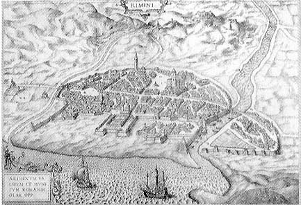 ARIMINUM VALIDUM AC MINITUM ROMANDIOLAE DA BRAUN - HOGEMBERG, 1575 - COLLEZIONE CARTOGRAFICA PRIVATA