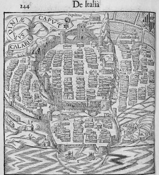 Calaris Sardinae caput da Sebastian Munster Cosmographiae Universalis, 1550, Basilea, H. Petri