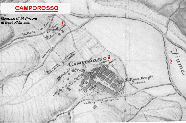 originario insediamento rurale di origine romana [ il cui primigenio complesso demico nello straordinario areale topografico della CHIESA DI S.PIETRO ( inevitabilmente soggetta all'influsso delle case monastiche pedemontane e delle loro APPEENDICI SOSTANZIALMENTE STRUTTURATE SUL PERCORSO DI PELLEGRINAGGIO CHE DALL'OSPEDALE DEL CENISIO PORTAVA ALL'ABBAZIA DI NOVALESA PROCEDENDO PER UNA VIA ROMEA DIRAMAZIONE DELLA FRANCIGENA CHE PORTAVA QUINDI SINO AL CONVENTO DOLCEACQUINO DI N. S. DELLA MOTA (MUTA)che poi Imperiale Doria avrebbe poi affidato il Convento agli Agostiniani Scalzi della Porta Carbonara di Genova] ED INFINE ALLA CHIESA DI SAN PIETRO DI CAMPOROSSO E DA QUESTA [PRESCINDENDO DAI PELLEGRINI VOLTI A SANTIAGO DI COMPOSTELA PER RAGIONI SPIEGATE NEL PROSSIMO LINK PER CUI DA SAN PIETRO AVREBBERO DOVUTO SEGUIRE UN TRAGITTO D'ALTURA AGGIRANDO VENTIMIGLIA] RAGGIUNGERE LA NON LONTANA LINEA DEL MARE, GLI OSPIZI ED OSPEDALI ERETI NELL'AREALE E STABILIRSI IN PROSPETTIVA DELLA DIRETTRICE PER LE SANTE METE