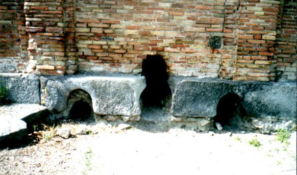 IL CASTELUM AQUAE DI POMPEI VISTO DALL'ESTERNO: ALLE VARIE APERTURE SI COLLEGAVANO I DIVERSI CONDOTTI, IN COCCIOPESTO O PIOMBO, CHE PROCEDEVANO VERSO IL CENTRO URBANO PORTANDO L'ACQUA ALLE SPECIFICHE SUE DESTINAZIONI, SIN ADDIRITTURA NELLE ABITAZIONI PRIVATE