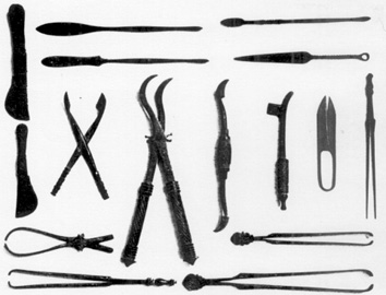 STRUMENTI CHIRURGICI SCOPERTI A POMPEI NELLA COSI' DETTA CASA DEL CHIRURGO: A PRESCINDERE DALLA SPECIFICITA' E PECULIARITA' DI QUESTO RITROVAMENTO VALE COMUNQUE LA PENA DI RAMMENTARE COME, UN'AVANZATA COGNIZIONE DELL'ICONOGRAFIA PUBBLICITARIA, INDUCESSE I MEDICI A SEGNALARE CON TARGHE E RILIEVI LA SPECIFICITA' DEI LORO SERVIZI E DEGLI AMBULATORI GESTITI.