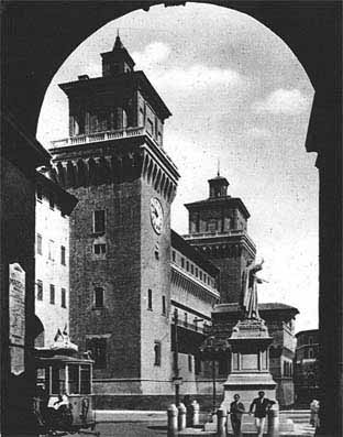 CASTELLO ESTENSE - IMMAGINE ANNO 1949: SPICCA LA STATUA DEL SAVONAROLA