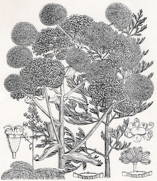 Ferula tingitana pianta nativa dell'Africa settentrionale: disegno da Curtis' Botanical Magazine, volume 118, plate 7267, 1892. DA RACCOLTA PRIVATA