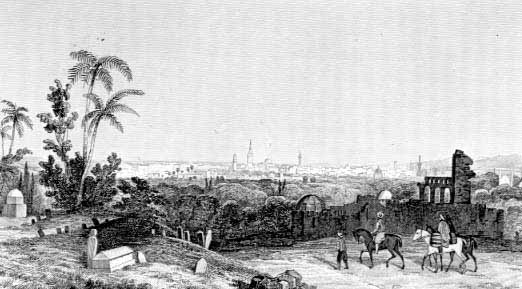 QUI SPICCA LA DESCRIZIONE DEL MEDIO ORIENTE E QUINDI ANCHE DEI LUOGHI SANTI DELLA CRISTIANITA' E DELLE AREE CIRCONVICINE: IN QUESTA STAMPA, SU INCISIONE DI A. PERBONI, SI PUO' PER ESEMPIO AMMIRARE LA SIRIANA CITTA' DI DAMASCO CELEBRE, OLTRE CHE PER LA STORIA ED I MONUMENTI, PERCHE' SULLA VIA PER DAMASCO AVVENNE LA CONVERSIONE DI SAULO POI SAN PAOLO, L'APOSTOLO DELLE GENTI.