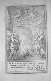 Antiporta de l'Index librorum prohibitorum sanctissimi domini nostri Gregorii XIV Pontificis Maximi jussu editus, Romae, ex Tipographia Reverendae Camerae Apostolicae, 1835.