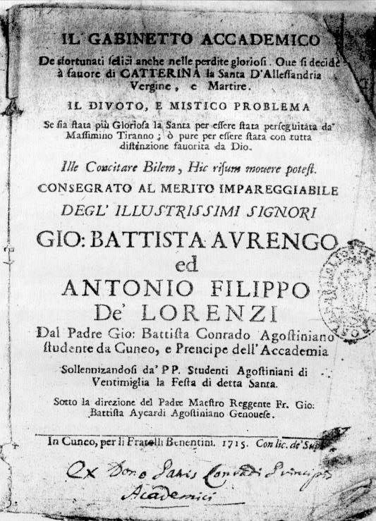 "DISCORSO ACCADEMICO" IN CIVICA BIBLIOTECA APROSIANA DI VENTIMIGLIA