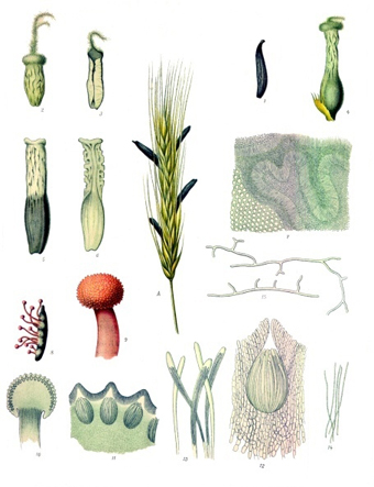 ERGOT è il nome comune dato ad un ascomiceta denominato Claviceps purpurea. Il genere Claviceps conta circa una cinquantina di specie. La specie in questione è parassita delle graminacee e forma degli sclerozi simili a cornetti o clavette che conferiscono alla pianta infetta (spesso la SEGALE) il nome comune di "segale cornuta".