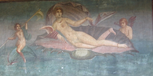 Questo dipinto murale di Pompei si crede basato sulla Venere Anadiomene di Apelle trasportata a Roma da Augusto.