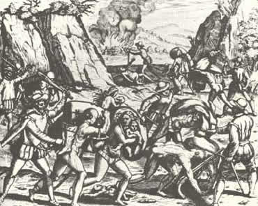 illustrazioni di Theodore de Bry pubblicate nella Brevissima relacion de la destruycion de las Indias de Bartolomé de las Casas, 1552
