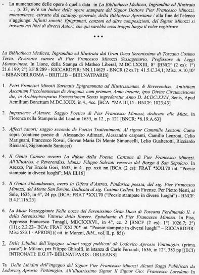 IL PREZIOSO ELENCO E' ANCORA DOVUTO ALLA CORTESIA DEL SIGNOR RENATO GIULIETTI RESPONSABILE DEL SETTORE CULTURA DEL COMUNE DI MONTE SAN SAVINO (PROVINCIA DI SIENA) CHE HA DOVEROSAMENTE USATO LE SIGLE DELLE BIBLIOTECHE IN CUI HA INDIVIDUATO LE OPERE DEL MINOZZI