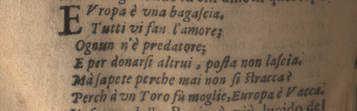 Il brano è una trasposizione poetica non priva di valutazioni escrologiche di un mito greco = Europa era figlia di Agenore, re di Tiro, antica città fenicia. Zeus se ne innamorò, vedendola insieme ad altre coetanee raccogliere dei fiori nei pressi della spiaggia. Zeus allora inventò uno dei suoi molteplici travestimenti: ordinò a Ermes di guidare i buoi del padre di Europa verso quella spiaggia. Zeus quindi prese le sembianze di un toro bianco, le si avvicinò e si stese ai suoi piedi. Europa salì sul dorso del toro, e questi la portò attraverso il mare fino all'isola di Creta.