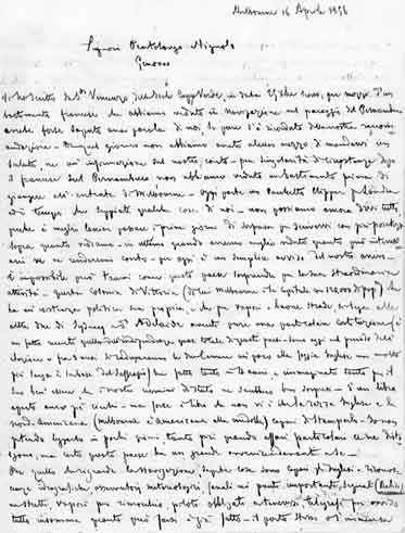 L’inedito qui proposto, datato Melbourne 16 Aprile 1856, dovrebbe collocarsi nel I volume della Morelli (lettere di Bixio tra il 1847 ed il 1860) dopo la lettera che sempre da Melbourne Nino Bixio indirizzò a Genova alla moglie Adelaide il 15 aprile 1856 (pp.140-143, classificata come "Lettera LXXVIII") cui invece nell’opera di Emilia Morelli segue la celebre epistola (Melbourne, 24 maggio 1856 classificata "Lettera LXXIX", pp.143-146) in cui Bixio, sempre scrivendo alla consorte, riproduce alcune sarcine della lettera da noi sopra editata, depennando le considerazioni commerciali ed inserendo nuove descrizioni del panorama australiano, sia demico che geografico.