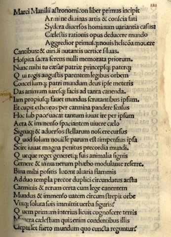 MANILIUS MARCO ASTRONOMICON LIBER S.L. S.D.: INCUNABOLO DA C.B.A.