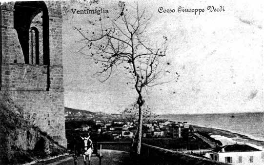 DALL'ALTURA DI VENTIMIGLIA MEDIEVALE BEN SI VEDE LA FOCE DEL ROIA CHE CONSERVA AI PRIMI DEL '900 LA STRUTTURA DEL PORTO CANALE E CHE E' CARATTERIZZATA DALLA FABBRICA DELLA PASSERELLA PEDONALE IN FERRO DA REPERTORIO FOTOGRAFICO EDITO