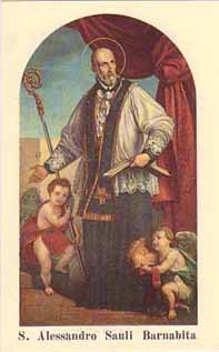Alessandro Sauli, nato a Milano da famiglia genovese, entrò tra i Barnabiti a diciassett'anni, nel 1551. Come prova gli era stato imposto di predicare sulla piazza del mercato: il successo della predicazione fu consolante, e il giovane venne accolto nella nuova Congregazione. Tra i Barnabiti, Alessandro Sauli innestò alla sua già larga cultura umanistica una solida cultura teologica. La sua mente era così aperta e al tempo stesso tenace che imparò a memoria tutta la Somma teologica di San Tommaso! La cultura non lo rese vano, né lo distolse dagli uffici più umili. Con una mano suonava la campana, e con l'altra reggeva il libro che leggeva avidamente. A ventinove anni, insegnava già filosofia e teologia a Pavia, e contemporaneamente faceva il sagrestano. Predicatore acclamato, sceso dal pergamo, rigovernava i piatti in cucina. Soltanto durante la Messa, si teneva accanto un confratello, che doveva ricordargli a che punto fosse. Non si trattava però di distrazioni, ma di rapimenti estatici. Tornato a Milano, superiore nel Collegio di San Barnaba, veniva ricercato quasi ogni giorno da San Carlo Borromeo, per " prudenti consigli ".