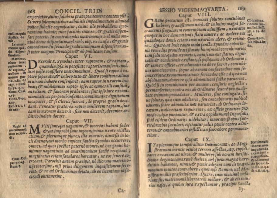 Tametsi Decreto del Concilio di Trento sulla Riforma del Matrimonio, testo latino da volume seicentesco, sessione XXIV, 11 Novembre 1563