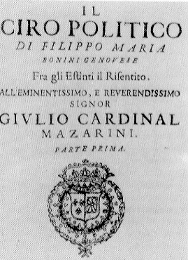 Bonini, Filippo Maria, Il Ciro politico di Filippo Maria Bonini genovese fra gli Estinti il Risentito ... parte prima, In Genova : per Pier Giovanni Calenzani, 1647 [17], 346, [2] p. ; 4°.