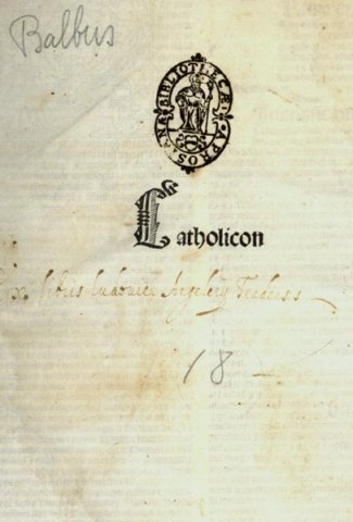 ESEMPLARE DEL CATHOLICON, IL CELEBRE LESSICO LATINO STESO DAL GENOVESE BALBUS JOHANNES (GIOVANNI BALBI) INCUNABOLO DELL'EDIZIONE DI VENEZIA DEL 1497