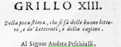 integralmente digitalizzata Grillaia del 1668 (vedine il FRONTESPIZIO) il GRILLO (o capitolo) XIII il cui titolo detta "Della poca stima che si fa della buone lettere e de' letterati, e della cagion" . "Che mi giova di Lira armar la mano, Io la bella armonia negletta sento, A questa chiara quanto esemplare esternazione Aprosio fa quindi seguire quelle di Girolamo Preti e Claudio Achillini quindi quelle di Giuseppe Battista e di Francesco della Valle anche se sottolinea un'esternazione lirica assai pertinente di Francesco Baldacci che giudica "...degno di miglior fortuna per il suo letterario valore..." e che scrisse sul tema discusso "Che val penna d'ingegno alzarsi a volo/ Fin sovra il Ciel, se quindi avaro Nume/ Tarpata e vil la risospinge al suolo ? ". Sia pur pianta infeconda hoggi l'Alloro, Io pur, Sersale, infra l'Aonio Choro Qual più degna esser puote opra, e quiete, Altri gli heroi servir colmo di speme Sembra la vita, che da noi sen'fugge, Lieve vapor, ch'avidamente fugge Ma sol pagine verghi, e sparga inchiostro More colui, che le lusinghe infide La passo in Roma à spasso passeggiando Urto in Parnaso, e do di naso in Pindo, Lodo Dio: content'io contento il Mondo, In effetti Aprosio aveva già discusso con il Minozzi il tema della Fortuna e della mutevolezza dei destini umani in senso esteso e quindi nel contesto di queste riflessioni, poi autonomamente meditate e ripensate, un ruolo epocale e simbolico aveva per lui finito per raggiungere - anche nel complesso di quelle riflessioni aprosiane maturate abbastanza perigliosamente in merito all'astrologia, disciplina vista con crescente sospetto dalla Chiesa, specie in merito alla preconizione del futuro -