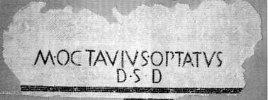 M. OCTAVIUS OPTATUS, il cui nome ben si legge su questo mosaico rinvenuto in piazza S. Pietro, doveva essere titolare di una domus (casa signorile) che si curò di far restaurare: il rinvenimento è importante in quanto, contribuendo a meglio delineare la topografia di AQUAE STATIELLAE, sembra provare l'ipotesi, già altrimenti formulata, di un significativo insediamento demico e abitativo in tale area