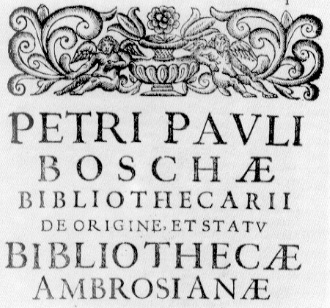 SI TRATTA DELL'INIZIO DEL VOLUME IN CUI PIETRO PAOLO BOSCA RICOSTRUISCE (MILANO, 1627) LA STORIA DELLA "BIBLIOTECA AMBROSIANA DI MILANO".