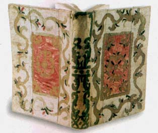 Nell'immagine si vide la legatura veneziana settecentesca di un LIBRO molto usato a livello italiano in occasione di CONVITI E FESTE quanto soprattutto di VEGLIE [queste ultime viste comunque spesso dai moralisti e dai predicatori ecclesiastici quali A. Aprosio, come OCCASIONI DI PECCATO anche legato ad EROTISMO E SENSUALITA' e non raramente eccitato tanto da inopportuni SPETTACOLI TEATRALI quanto dalla straripante visione seicentesca di AFFRESCHI E PITTURE EROTICAMENTE PROVOCANTI] in ambiente NOBILIARE o BORGHESE. Il volume, opera di GIROLAMO BARGAGLI, è intitolato DIALOGO DE' GIUOCHI CHE NELLE VEGGHIE SANESI SI USANO DI FARE (Venezia, presso il Griffio, 1592). Libri come questo erano gelosamente custoditi perché da essi si potevano ricavare utili insegnamenti per giochi da farsi durante le VEGLIE: il valore attribuito a questo volume del '500 è sottolineato dal fatto che (per sostituire una legatura rovinata e salvaguardare il testo) nel XVIII secolo i proprietari, oltre a farlo restaurare, ne fecero rifare la legatura in pergamena rigida, con intarsi di carta colorata presso il centro dei piatti, dipinta all'acquerello con tracce di lacca e oro secondo l'uso e le tecniche dell'arte povera veneziana del '700. Eseguita con estrema cura da un artista dilettante, forse un certo Luigi Silva su cui compare una nota manoscritta di possesso