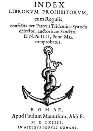Il primo “Indice” dei libri proibiti fu compilato nel dicembre del 1558 sotto il pontificato di Paolo IV e risultava diviso in tre classi: nella prima classe erano indicati i nomi di oltre 600 autori dei quali erano proibite tutte le opere; la seconda classe conteneva 126 titoli di opere proibite delle quali si conosceva l’autore; seguiva una terza categoria contente 332 opere anonime vietate. Erano poi elencate 45 edizioni proibite della Bibbia e del Nuovo Testamento e i nomi di 61 stampatori responsabili della pubblicazione di libri eretici.