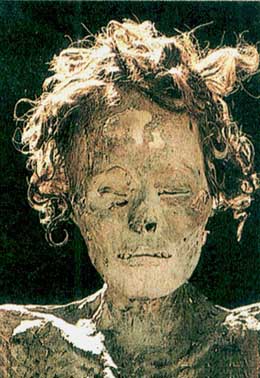 NELL'IMMAGINE SI VEDE UNA MUMMIA DI DONNA EGIZIANA CUSTODITA AL MUSEO NAZIONALE DE IL CAIRO IN EGITTO. GIOVA RAMMENTARE LA DISTINZIONE TRA "IMBALSAMAZIONE" E "MUMMIFICAZIONE". "MUMMIFICAZIONE" E' UN PROCESSO NATURALE DETERMINATO DALLE CONDIZIONI AMBIENTALI COME AVVENUTO A PALERMO NEL CONVENTO DEI CAPPUCCINI OVE IL MICROCLIMA DEI SOTTERRANEI HA RESO POSSIBILE UNA STRAORDINARIA CONSERVAZIONE DEI CORPI DI NOBILI ED AGIATI BORGHESI IN ESSI SEPOLTI (FENOMENI ANALOGHI SI SONO RISCONTRATI COMUNQUE IN VARIE PARTI DEL MONDO). PER "IMBALSAMAZIONE" SI INDICA UNA TECNICA BEN EVOLUTA (CHE HA RAGGIUNTO L'APICE IN EGITTO NEL XVI SECOLO A. C.) CHE GARANTIVA LA "MUMMIFICAZIONE" O "CONSERVAZIONE" STATICA DEL CORPO DELL'ESTINTO (IL TERMINE ARABO MUMIYYA HA FINITO POI PER PREVALERE A LIVELLO ETIMOLOGICO MA, PROVENENDO DALL'ANTICO EGIZIANO, INDICAVA UNA SOSTANZA UTILIZZATA PER L'IMBALSAMAZIONE). LA TECNICA DI "IMBALSAMAZIONE" CI E' NOTA TRAMITE LO STORICO GRECO ERODOTO. PER QUANTO NE HA LASCIATO SCRITTO, MA TENENDO COMUNQUE CONTO ANCHE DELLE POSTERIORI ACQUISIZIONI DELL'EGITTOLOGIA, SI APPRENDE CHE LA PRIMA OPERAZIONE SULL'ESTINTO ERA QUELLA DI ASPORTARE I VISCERI ED IL CERVELLO CHE, NON RITENUTO ORGANO DI PARTICOLARE IMPORTANZA SPIRITUALE, ERA ELIMINATO DAL SUSSEGUENTE RITUALE. NELLE CAVITA' COSI' LIBERATE, PER EVITARE LA DECOMPOSIZIONE ORGANICA, SI INTRODUCEVANO SOSTANZE AROMATICHE COME LA MIRRA: QUINDI SI RICUCIVA IL CORPO LASCIANDO SOLO IL CUORE IN SITO. A QUESTO PRIMO INTERVENTO SUCCEDEVA UN BAGNO PER UN LUNGO PERIODO DI TEMPO DEL CADAVERE IN UNA SOLUZIONE DI CARBONATO DI SODIO: SUCCESSIVAMENTE LO SI FACEVA ESSICCARE E QUINDI LO SI FASCIAVA CON BENDE ABBONDANTEMENTE INTRISE DI SOSTANZE GOMMOSE ED AROMATICHE. I VISCERI ESTRATTI ERANO INVECE DEPOSTI ENTRO SPECIFICI VASI DETTI CANOPI DESTINATI AD ESSERE DEPOSTI NELLA TOMBA ACCANTO ALLA MUMMIA SI' DA SEGUIRNE IL DESTINO NEL MONDO ULTRATERRENO. OGNI VASO, A SECONDA DELLA FUNZIONE, AVEVA UNA SUA TIPOLOGIA: QUELLO DESTINATO A CUSTODIRE LO STOMACO ERA A GUISA DI TESTA UMANA, QUELLO IN CUI SI PONEVA IL FEGATO A FORMA DI TESTA DI FALCO, IL VASO CANOPO PREPOSTO A CONSERVARE I POLMONI ERA A TESTA DI SCIACALLO ED INFINE QUELLO RISERVATO ALL'INTESTINO AVEVA LA FORMA DI UNA SCIMMIA. LA TECNICA DELL' "IMBALSAMAZIONE" FINI' PER GIUNGERE IN ITALIA, INTRODOTTA SPECIALMENTE DAI FUNZIONARI DELL'IMPERO ROMANO CHE AVEVANO PRESTATO SERVIZIO IN EGITTO E CHE AVEVANO LE POSSIBILITA' ECONOMICHE DI SOTTRARRE AL DISFACIMENTO, GRAZIE A QUESTA ANTICHISSIMA TECNICA DI IMBALSAMAZIONE, IL CORPO DEI PROPRI CARI, COME AVVENNE PER IL PADRE, EVIDENTEMENTE DISPERATO CHE FECE MUMMIFICARE QUESTA FANCIULLA DI EPOCA ROMANA IL CUI CORPO E' STATO RINVENUTO ASSAI BEN CONSERVATO IN UNA TOMBA RINVENUTA NON LONTANO DA ROMA