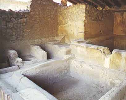 EDIFICIO di Via dell'Abbondanza è l'unico a Pompei destinato sin dalla costruzione a LAVANDERIA e TINTORIA (FULLONICA), a differenza delle altre tre adattate in preesistenti abitazioni.