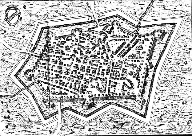 PIANTA DI LUCCA TRATTA DAL VOLUME DI FRANCIS SCHOTT ITINERARIO DE' VIAGGI PRINCIPALI D'ITALIA (VENEZIA, 1679)