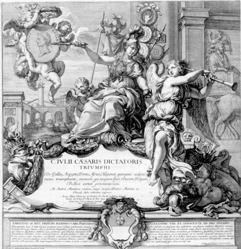 SI TRATTA DEL C. JULII CAESARIS DICTATORIS TRIUMPHI, DE GALLIA, AEGYPTO, PONTO, AFRICA, HISPANIA QUINQUIES EODEM MENSE TRIUMPHATIS, OMNIUM, QUI UNIQUAM FUERE, DUCUM, REGUM BELLICA VIRTUTE PRAESTANTISSIMI AB ANDREA MANTINEA [ANDREA MANTEGNA ] EXIMIO ATQUE INSIGNI PICTORE MANTUAE DUCALI AULA COLORIBUS EXPRESSI, ROMAE, DOMINICI DE RUBEIS, 1692, IN FOLIO, MM. 535 X 425: SI TRATTA DI UNA EDIZIONE ORIGINALE ED UNICA CHE SI PRESENTA CON UN