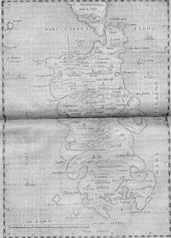 LA "SARDEGNA" NEL XVI SECOLO: CARTA TRATTA DA ALBERTI, LEANDRO, DESCRITTIONE DI TUTTA ITALIA...NELLA QUALE SI CONTIENE IL SITO DI ESSA, L'ORIGINE ET LE SIGNORIE DELLE CITTA' E DE' CASTELLI CO' NOMI ANTICHI, ET MODERNI, I COSTUMI DE POPOLI, ET LE CONDITIONI DE PAESI...[UNITO A ISOLE APPARTENENTI ALLA ITALIA...AGGIUNTOVI DI NUOVO I DISEGNI DI QUELLE, ET COLLOCATI A' SUOI LUOGHI, A COMUNE UTILITA', ET SODISFATTIONE DE LETTORI...], IN VINEGIA, PRESSO ALTOBELLO SALICATO, MDLXXXVIII (ESEMPLARE DA BIBLIOTECA PRIVATA)