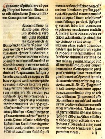INCUNABOLO DI ESTREMA RARITA' DAL TITOLO: COMPENDIUM VIRGINIS HONORIS, SIVE TRACTATUS IMMACULATAE CONCEPTIONIS FR. LUDOVICI A TURRE DE VERONA ORD. MINORE OBSERVANTIAE.