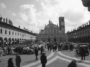 Quella della cittadina lombarda di VIGEVANO (qui ripresa da un'immagine antiquaria) è considerata una delle più belle PIAZZE D'ITALIA.