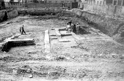Egidio Colla, nell'appendice di un suo prezioso lavoro (Gli Statuti Comunali Acquesi, Gribaudo, Cavallermaggiore, 1987 [volume della collana Ex libris aurum, gią diretta da Bartolomeo Durante]) ha riportato vario materiale iconografico delle scoperte di romanitą nella cittą piemontese di AQUAE STATIELLAE (ACQUI TERME) [tra queste la fotografia sopra proposta che documenta il rinvenimento nel CENTRO CITTADINO di un'abitazione romana verisimilmente di epoca imperiale]. Per correttezza si rimanda il lettore all'appendice del Colla che ha fatto un utile regesto cronologico dei rinvenimenti di reperti romani in Acqui e contado: ci si limita qui a riportare, coniandola sempre dal lavoro dello studioso citato, la supposta topografia della cittą romana che lo stesso Colla, valendosi anche di ricerche compiute da altri studiosi ed archeologi, ha grossomodo delineata (p.262) tenendone in considerazione alcuni riconosciuti punti fermi quali il perimetro identificabile sui cardini oggi nominati "Piazza S. Guido, Corso Roma, Corso Cavour, Corso Dante, Via Biorci, Piazza Conciliazione, Piazza San Guido"