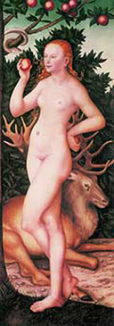 Innumerevoli opere d’arte di insigni artisti, l’hanno raffigurata mentre tentata dal serpente, coglie il frutto proibito e mentre lo porge anche ad Adamo, commettendo così il peccato originale, fonte di ogni sofferenza umana e della perdita dell’amicizia con Dio.