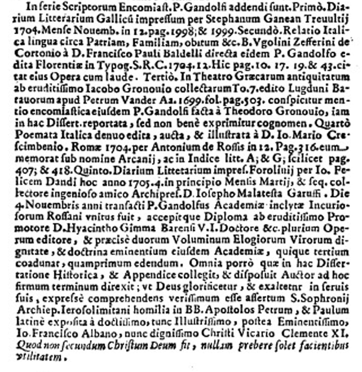 Vedi qui il Diploma di ascrizione di Domenico Antonio Gandolfo all'"Accademia degli Incuriosi di Rossano" patrocinata da Giacinto Gimma (Inf. Durante) FINE PROCESSO DI DIGITALIZZAZIONE