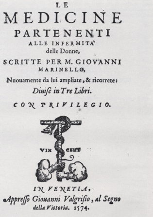 Il momento essenziale, sia in campo medico che giuridico, del ******PARTO******.GIOVANNI MARINELLO fu medico modenese, esperto altresì nelle PATOLOGIE FEMMINILI, vissuto nel secolo XVI. Soggiornò per un lungo periodo a Venezia, dove probabilmente morì. Oltre che esperto nella sua professione (imprtante fra altri il lavoro qui proposto sulle MALATTIE DELLE DONNE) fu grande conoscitore della lingua greca, latina ed italiana; compare citato nelle edizioni con i nomi di