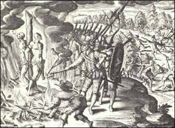 illustrazioni di Theodore de Bry pubblicate nella Brevissima relacion de la destruycion de las Indias de Bartolomé de las Casas, 1552