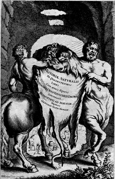Frontespizio della Historiae naturalis de quadrupedibus libri, cum aeneis figuris, Johannes Jonstonus, medicinae doctor, concinnavit..., di Jan Jonston