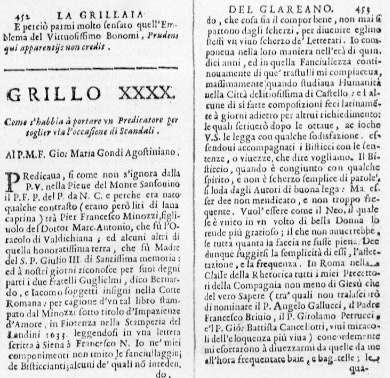 DI UN CAPITOLO (QUI DI SEGUITO PROPOSTO AGLI STUDIOSI NELLA SUA INTEREZZA) DELL'OPERA MORALISTICA DELLA GRILLAJA CHE L'ERUDITO E POLIGRAFO ANGELICO APROSIO DEDICO' AVVERSO GLI ECCESSI DI ZELO, AUTENTICO E SOPRATTUTTO MALIZIOSO, NELLE PREDICHE RELIGIOSE DEL XVII SECOLO: NEL TESTO SI LEGGE CHE UN PREDICATORE, O PER MALA INTENZIONE O PER INVOLONTARIETA', FINI' PER LANCIARE UNA ACCUSA PERICOLOSA AVVERSO IL LETTERATO PIER FRANCESCO MINOZZI, PERALTRO SEMPRE SOSPETTATO DI STRANEZZE E DI INTERESSI CULTURALI AI LIMITI DELL'ORTODOSSIA, CHE SI TROVO' IN OBBLIGO DI RISPONDERE CON UNA LETTERA E QUINDI, VISTA LA NON COMPRENSIONE DEL SUO DISCORSO, A RIPRENDERE L'AUTODIFESA CON ALTRA MISSIVA