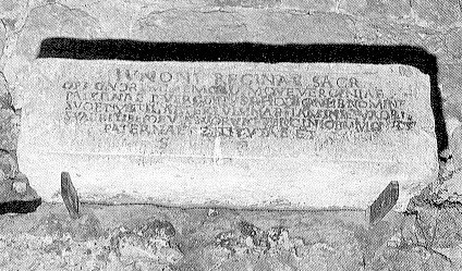 10-13 dicembre 1969/ Mentre gli operai iniziano il lavoro di pulitura del pavimento in marmo per procedere alla levigatura, si smontano le pietre del tratto di muro [della cattedrale intemelia] che circonda la lapide di Giunone Regina -ivi murata durante i restauri effettuati nella Cattedrale nel secolo scorso. Isolata completamente l'iscrizione, si osserva che essa è profonda ben 42 cm. e presenta i quattro lati molto grezzi, come se fosse stata murata alla base di qualche monumento romano. Si decide di collocarla nello stesso posto, facendola sporgere di cm. 60 e isolandola completamente dalla muratura: così F. Pallarés in I restauri della cattedrale di ventimiglia - Cronaca dei restauri, in "Rivista Ingauna e Intemelia", n.s., 1969-1970 [edita 1995], p.57 (foto Verrando F.)