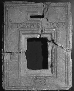 Nelle principali città vennero create buche d'impostazione ufficiali con lo stemma reale (nell'immagine, una buca d'impostazione in travertino dello Stato Pontificio datata 1633. Proviene da Borgo Cerreto - Perugia - © Museo Storico P.T.).