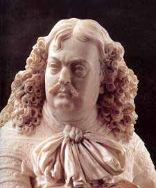 Farnese Ranuccio II (vedi sopra il BUSTO MARMOREO) 6° duca di Parma e Piacenza (Cortemaggiore, Piacenza, 1630-Parma 1694). Alla morte del padre Odoardo il governo del Ducato venne esercitato fino alla sua maggiore età dalla madre, Margherita de' Medici, e dallo zio cardinale, Francesco. Durante il suo regno si ripresentò il problema dei feudi romani pretesi dal papato, ma Ranuccio II, oberato dai debiti e ormai privo di appoggi in Roma, non poté opporsi a Innocenzo X che, nel 1649, conquistò e distrusse Castro. La reazione farnesiana fu debole e inefficace: l'esercito ducale venne facilmente sconfitto nei pressi di Bologna dalle truppe pontificie. La perdita degli antichi possedimenti laziali accentuò il distacco della famiglia dagli interessi romani: dopo il 1647, anno della morte di Francesco, nessun Farnese venne più insignito della porpora cardinalizia, interrompendo quella consuetudine che aveva loro consentito di mantenere un vigile controllo sulle vicende della capitale. Ulteriore segnale di questo distacco è da vedere nel trasferimento di gran parte della quadreria e degli arredi che arricchivano palazzo Farnese presse le residenze del Ducato parmense. Qui, in contrasto con il crescente fasto della vita di corte, le condizioni finanziarie ed economiche si aggravarono ulteriormente: la peste del 1630 decimò la popolazione e ridusse al minimo le attività produttive, già stagnanti a causa dello stato di guerra permanente. Gli ultimi anni di regno di Ranuccio II furono funestati dalla presenza delle truppe austriache dal 1691 al 1695, che apportarono le consuete devastazioni su un territorio ormai stremato. Nonostante le difficoltà economiche, Ranuccio II non rinunciò ad alcuni prestigiosi interventi edilizi, fra cui la ristrutturazione del castello di Colorno tra il 1663 e il 1671, trasformato in Palazzo Ducale su progetto dell'architetto Giovanbattista Lavezzoli in collaborazione, forse, con il parmigiano Mauro degli Oddi e la realizzazione della Peschiera nel Giardino Ducale di Parma, per festeggiare con una naumachia le nozze del primogenito Odoardo (1690).