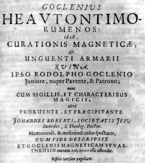 PARIMENTI ACCORPATA NEL VOLUME MISCELLANEO THEATRUM SYMPATHETICUM, PER QUANTO PONDEROSA, QUESTA OPERA DEL ROBERTI POCO AGGIUNGE ALLA SATIRA PUNGENTE DEL SUO PRIMO SCRITTO, SEMMAI DILATANDO OLTRE MISURA CERTE RIFLESSIONI SULLA PRESUNTA DEMONOLATRIA DEL GOCLENIUS