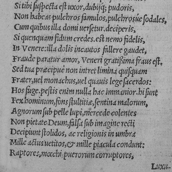 DAL CAPITOLO CORRENTE SOTTO IL SEGNO DEL "LEONE", MA LE RIPROVAZIONI CONTRO LE COSTUMANZE MORALI DEL CLERO, A QUALSIASI LIVELLO E GERARCHIA, SONO SPARSE NELL'INTIERO POEMA, PERALTRO MESCOLATE AD UNA SERIE DI CONSIDERAZIONI ALTERNATIVE TESE A VALORIZZARE I GIUSTI ED IL GIUSTO COMPORTAMENTO: CERTO QUESTO NON IMMOTIVATO ANELITO DI RIFORMA DEL CLERO COMPROMISE ULTERIORMENTE L'OPERA DELLO STELLATO IN UN TEMPO IN CUI LA RIFORMA PROTESTANTE ANDAVA STRUTTURANDOSI, ANCHE, SULLA DIRETTRICE DI UN ATTACCO FRONTALE DECISO ALLA DEGENERAZIONE DEL CLERO CATTOLICO ROMANO