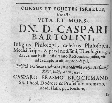 Di KASPAR BARTHOLIN o all'italiana GASPARO BARTOLINI si legge questa memoria in: Witte, Henning: Memoriae medicorum nostri seculi clarissimorum renovatae decas prima (- secunda). - Königsberg, Frankfurt