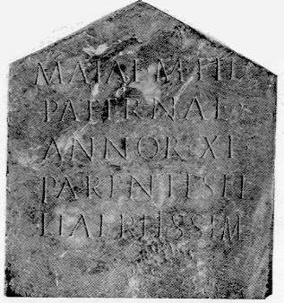 ISCRIZIONE FUNEBRE DELLA BIMBA UNDICENNE MAIA PATERNA, DATATA DEL III SECOLO, RICAVATA SUL RETRO DI UN'ISCRIZIONE DEL I SECOLO D. CRISTO